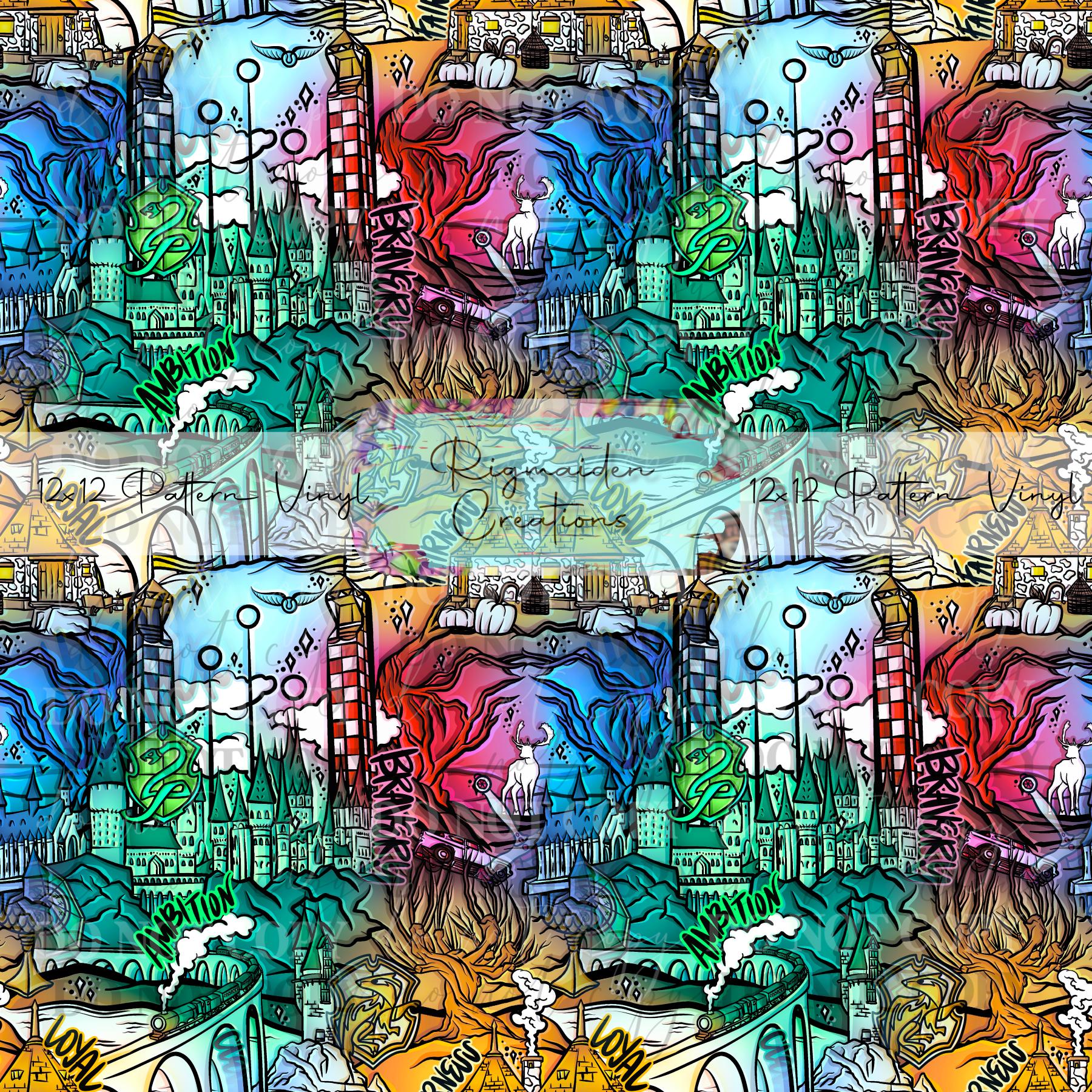 Bright all 4 houses printed vinyl with colors that pop, perfect as a background on your tumblers or an accent to your glitter.