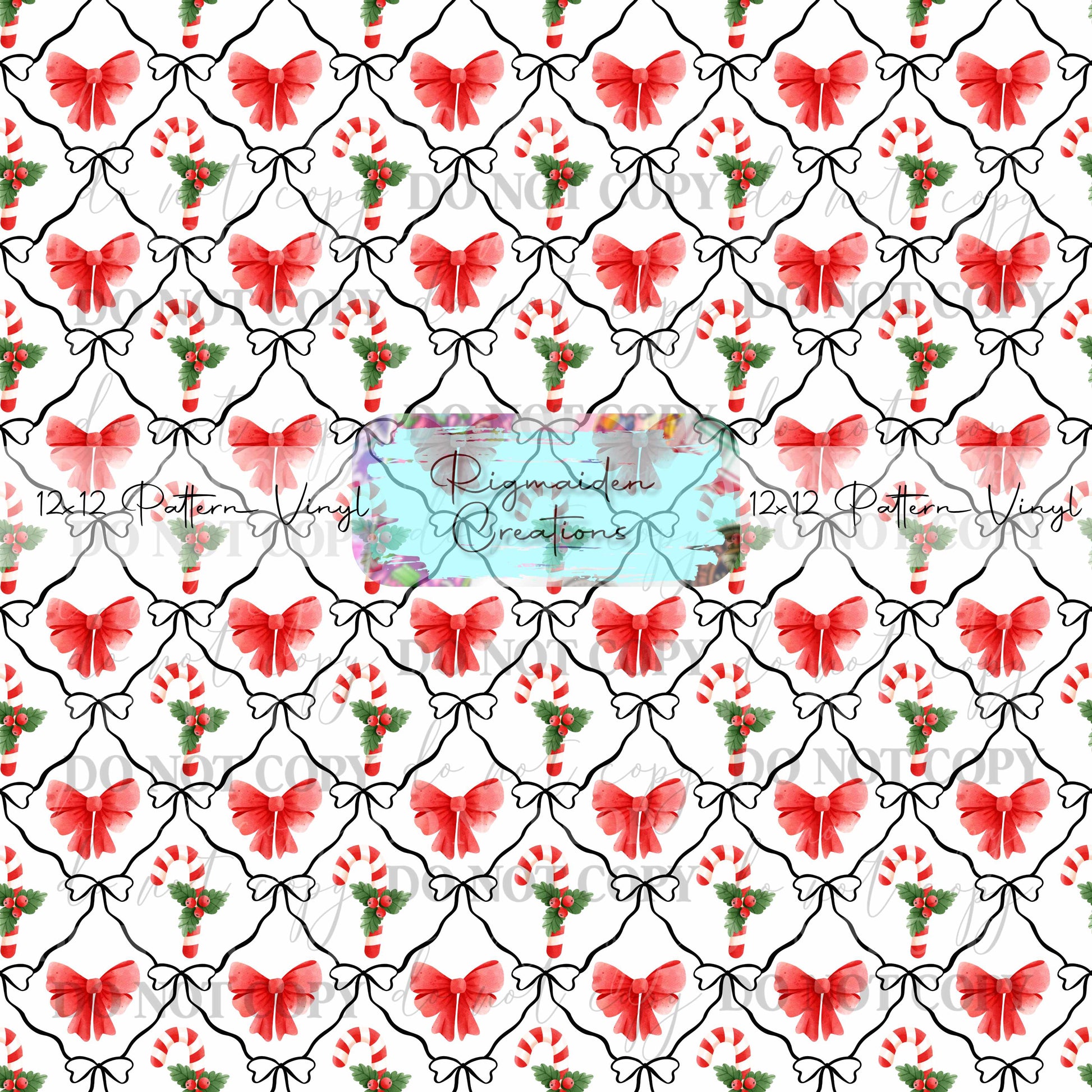 Coquette Bows and Candy Cane Vinyl drawn by Em+Co Designs