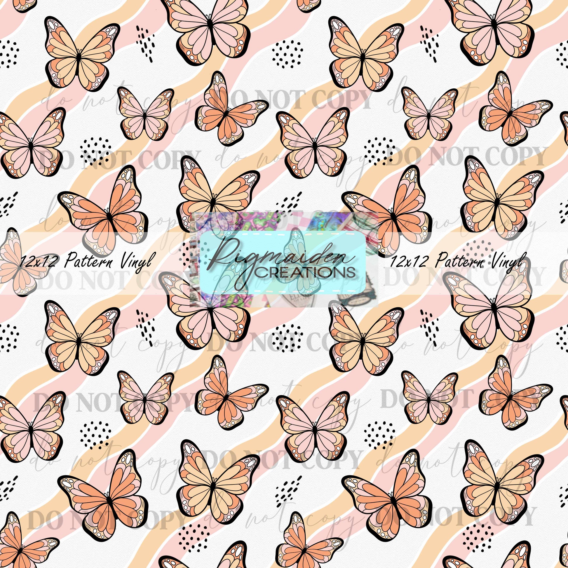 Monarch butterflies on a groovy wavy background printed on vinyl available in multiple options for sizes and type of vinyl.