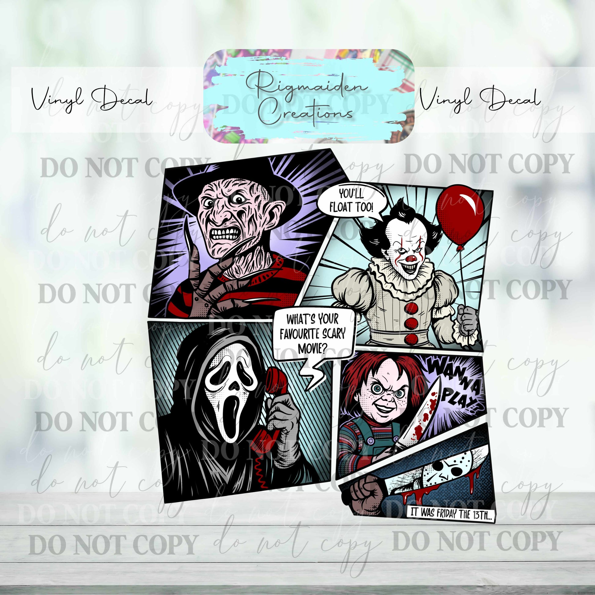 Dive into the eerie world of Horror Comics with this chilling vinyl decal! Featuring vintage-inspired comic book panels filled with ghouls, monsters, and spooky suspense, this design is perfect for fans of retro horror, pulp fiction vibes, and classic fright-night flair. A bold and creepy addition to your craft projects, tumblers, or spooky setups!