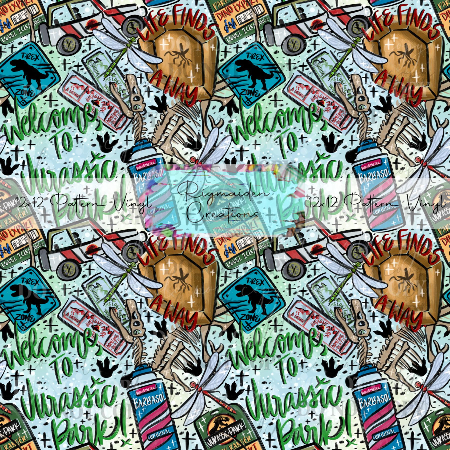 Jurassic Dino Sketch printed vinyl with colors that pop, perfect as a background on your tumblers or an accent to your glitter.