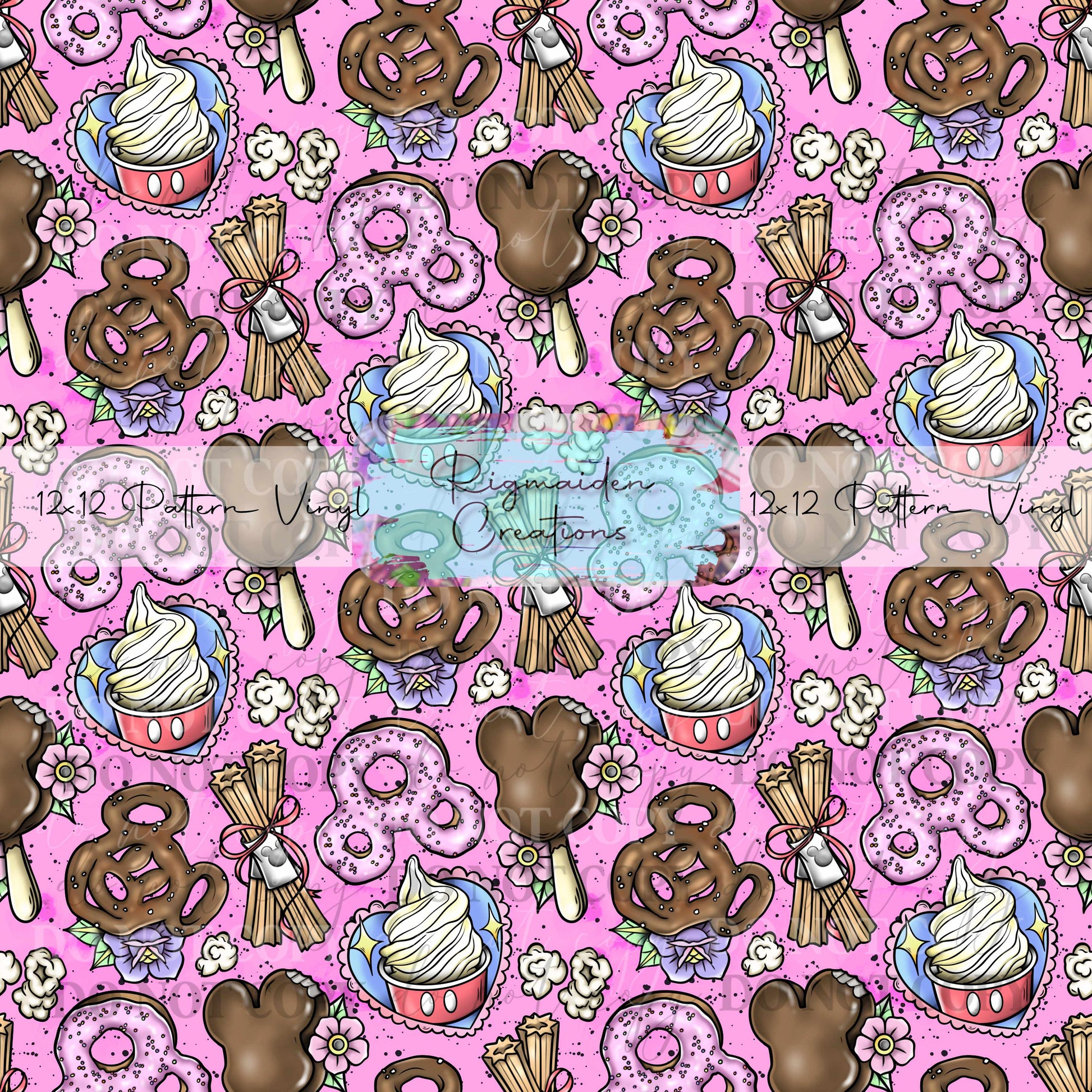 Bring the magic of your favorite theme park treats to your crafts with our Park Snacks Printed Vinyl! This playful design features iconic goodies like churros, Mickey-shaped ice cream bars, pretzels, popcorn, and colorful whipped treats—all set against a cheerful, whimsical backdrop. It’s a sweet tribute to those delicious park day memories we all crave.