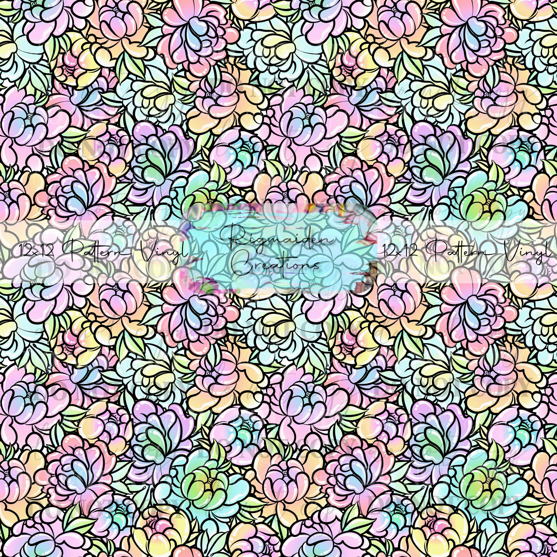 Pastel Rainbow Floral printed vinyl with colors that pop, perfect as a background on your tumblers or an accent to your glitter.
