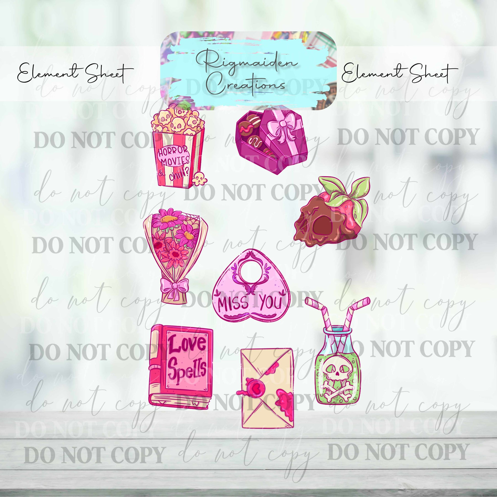 Spooky Valentine's Day Mini Element Sheet featuring clipart from Cerra's Shop Creates.