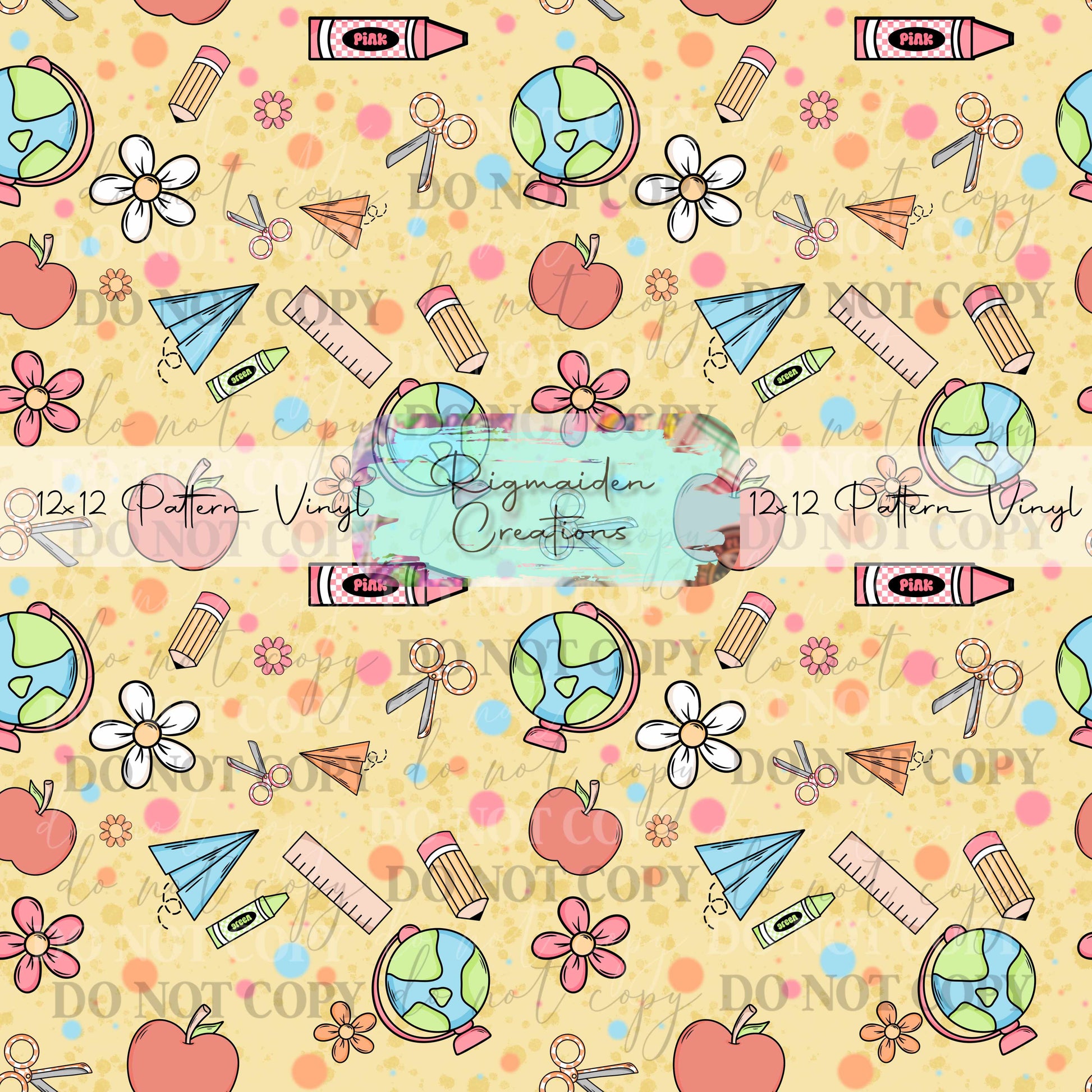 Get ready to make the grade with our Classroom Items Printed Vinyl Pattern! This playful design features all your favorite school essentials—pencils, rulers, scissors, notebooks, and more—set in a bright, cheerful layout. Perfect for teachers, students, and education-themed DIY projects like tumblers, mugs, and classroom gifts.